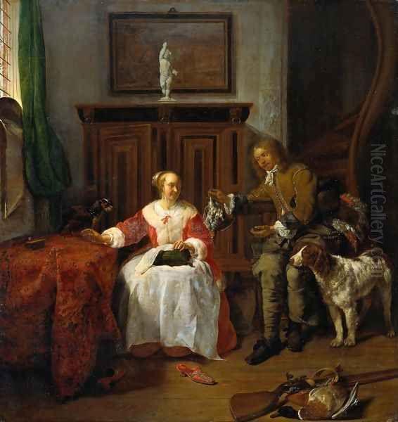 Bring the timeless beauty of Gabriel Metsu's The Hunter's Gift 1658-60 into your home with a handmade oil painting reproduction. Carefully recreated on canvas by skilled artists using traditional techniques, this piece captures the delicate brushwork, subtle light, and vibrant color of the original masterpiece. With museum-level quality and rich texture, it brings elegance and artistic depth to any space. Enjoy free shipping and make this masterpiece a part of your personal collection.