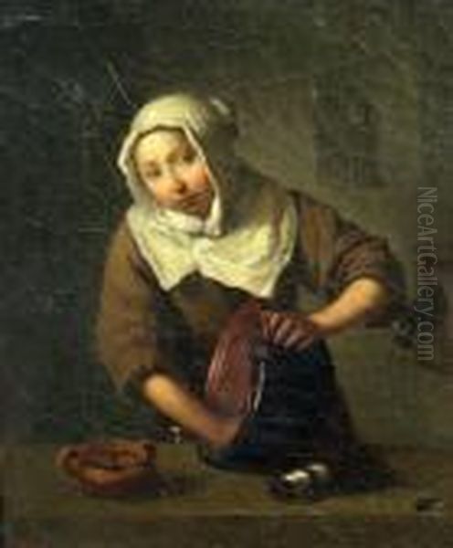 Bring the timeless beauty of Gabriel Metsu's Woman Washing A Bowl In An Interior into your home with a handmade oil painting reproduction. Carefully recreated on canvas by skilled artists using traditional techniques, this piece captures the delicate brushwork, subtle light, and vibrant color of the original masterpiece. With museum-level quality and rich texture, it brings elegance and artistic depth to any space. Enjoy free shipping and make this masterpiece a part of your personal collection.