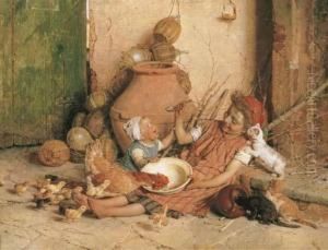 In the early stages of his career, Chierici focused on religious and historical subjects, but he gradually shifted towards genre painting, which brought him greater success and popularity. His paintings were characterized by a fine attention to detail, a vivid palette, and an ability to capture the nuances of everyday life. In his genre scenes, he often portrayed peasant children engaged in ordinary activities, capturing their innocence and sometimes their mischief.