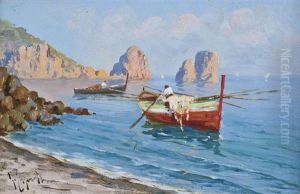 Fishing Vessels Moored At An Italian Town