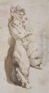 A Woman And A Child Turning Away From An Executioner, With Another Standing Female Figure