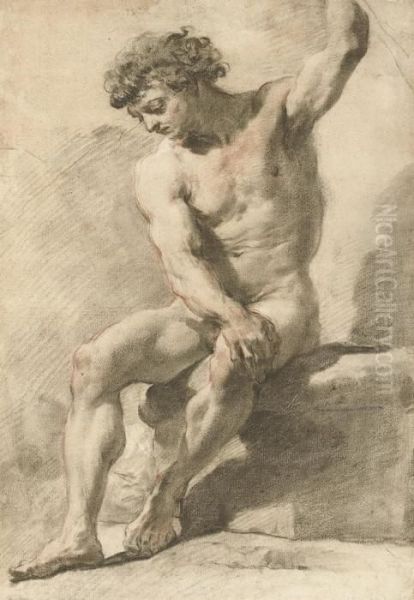 A Seated Academic Male Nude, His Left Arm Raised