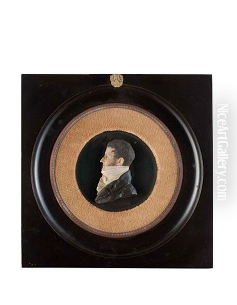 Profilo Maschile Policromo Entro Cornice In Legno Ebanizzato