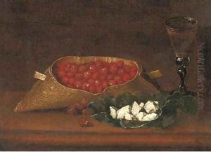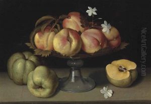 A Glass Compote With Peaches