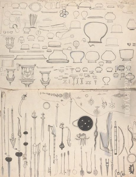 Bring the timeless beauty of Gangaram Chintaman Tambat's Military Weapons, Female Ornaments, Utencils for Culinary and Religious Purposes into your home with a handmade oil painting reproduction. Carefully recreated on canvas by skilled artists using traditional techniques, this piece captures the delicate brushwork, subtle light, and vibrant color of the original masterpiece. With museum-level quality and rich texture, it brings elegance and artistic depth to any space. Enjoy free shipping and make this masterpiece a part of your personal collection.