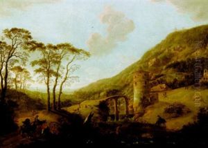 A Classical Landscape With Figures Near A Bridge Leading To A Village