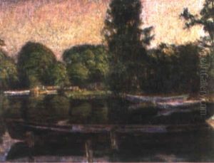 Abendliche Bukolische Landschaft Mit Stadt Und Staffage
