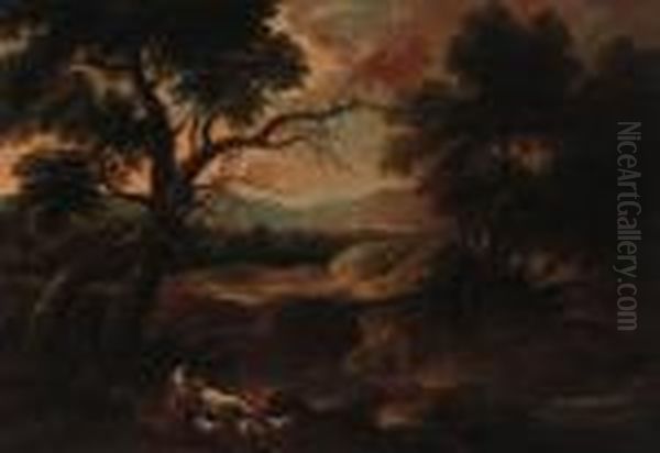 Drovers In A Wooded Landscape Oil Painting by Gaspard Dughet