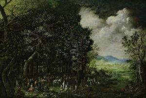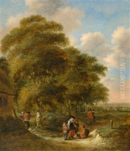 Paesaggio Fluviale Con Figure E Architetture Sullo Sfondo