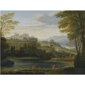 A Classical Landscape With Fishermen Drawing In Their Nets