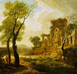 Figures And Cattle By A Pond, With Classical Ruins Beyond