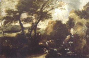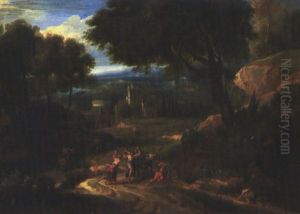 An Italianate Landscape With A Hunter And Dogs Near A Hill-top Town
