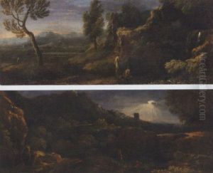 A Stormy Landscape With Travelers By A Cliff