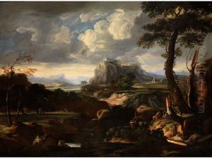 An Italianate Landscape With Figures Resting And A View Of Tivoli Beyond; And A Shepherd And His Flock In An Italianate Landscape (2 Works)