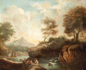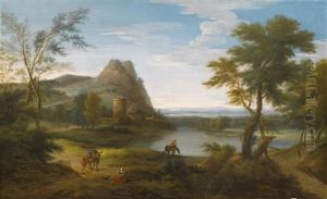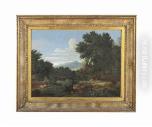 An Extensive River Landscape With Classical Figures At Rest
