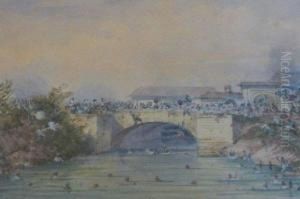 Bord De Riviere Aux Lavandieres Et Pecheurs