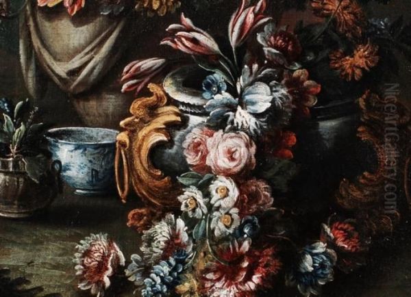Blumenstilleben Mit Chinavase In Landschaft