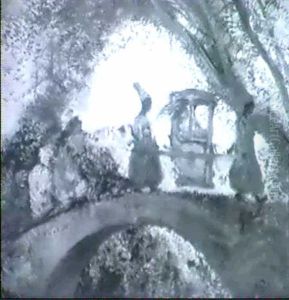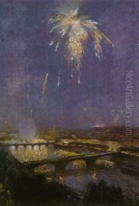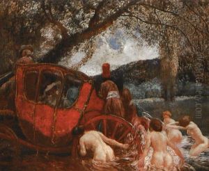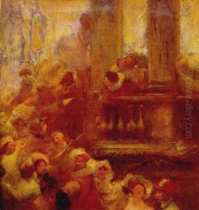 Harlequin, Pierrot And Ballerina Overlooking A Balcony, A Stage Carriage Waiting