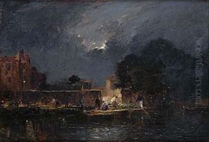 Boats Before A Village By Moonlight, Hanoi