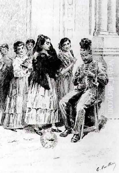 Bring the timeless beauty of Gaston Vuillier's Carmenby Prosper Merimee illustrated by Eugene Decisy 1866-p.1936 into your home with a handmade oil painting reproduction. Carefully recreated on canvas by skilled artists using traditional techniques, this piece captures the delicate brushwork, subtle light, and vibrant color of the original masterpiece. With museum-level quality and rich texture, it brings elegance and artistic depth to any space. Enjoy free shipping and make this masterpiece a part of your personal collection.