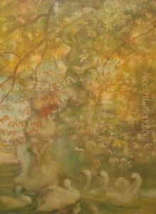 "the Woman And The Swans"; Water Andbodycolour, Bears Signature, Bears Inscribed Label Attached To Thereverse Of The Frame, 73.5x54cm