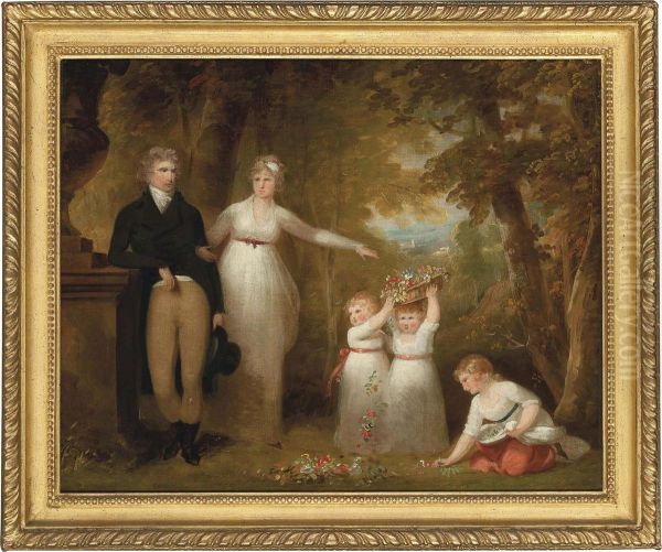 A Family Group Portrait In A Wooded Landscape