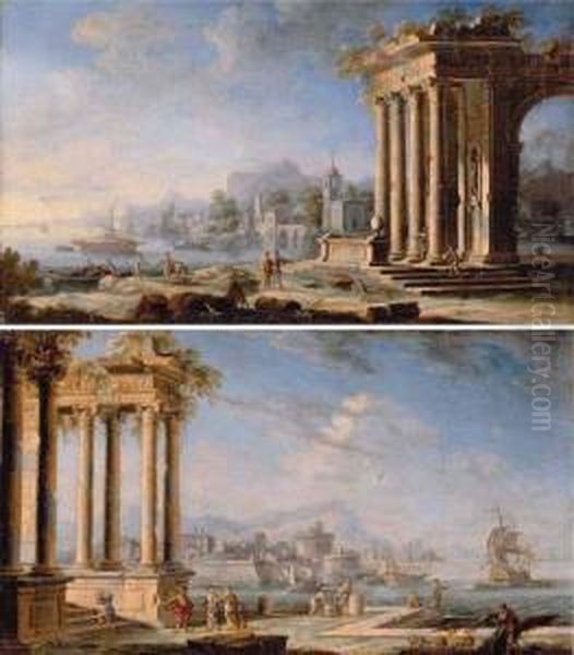 Italianate Coastal Landscapes With Figures