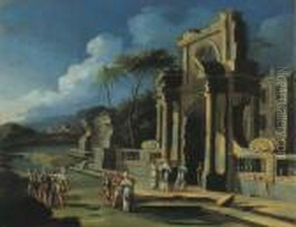 Scena Biblica Davanti A Un Tempio