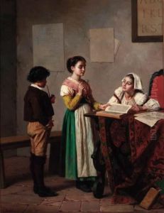 Bring the timeless beauty of Gennaro Guglielmi's Junge Neapolitanerin Beim Haarschmucken Mit Mutter Und Brautigam into your home with a handmade oil painting reproduction. Carefully recreated on canvas by skilled artists using traditional techniques, this piece captures the delicate brushwork, subtle light, and vibrant color of the original masterpiece. With museum-level quality and rich texture, it brings elegance and artistic depth to any space. Enjoy free shipping and make this masterpiece a part of your personal collection.