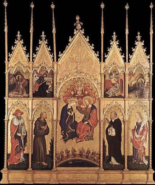 Bring the timeless beauty of Gentile Da Fabriano's Coronation of the Virgin and Saints c. 1400 into your home with a handmade oil painting reproduction. Carefully recreated on canvas by skilled artists using traditional techniques, this piece captures the delicate brushwork, subtle light, and vibrant color of the original masterpiece. With museum-level quality and rich texture, it brings elegance and artistic depth to any space. Enjoy free shipping and make this masterpiece a part of your personal collection.