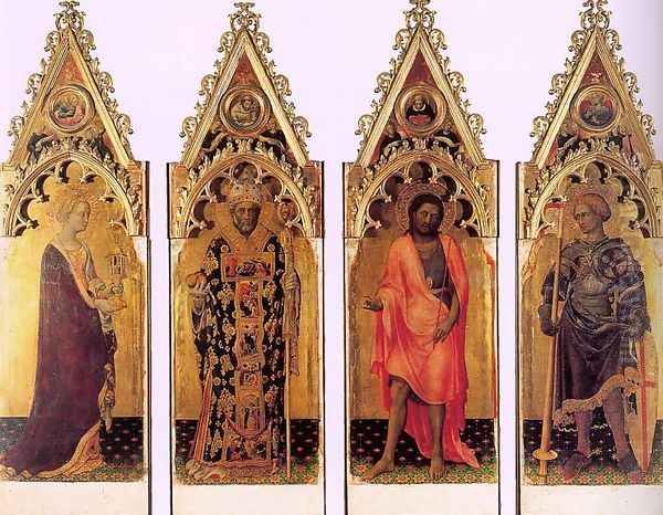 Bring the timeless beauty of Gentile Da Fabriano's Four Saints of the Quaratesi Polyptych 1425 into your home with a handmade oil painting reproduction. Carefully recreated on canvas by skilled artists using traditional techniques, this piece captures the delicate brushwork, subtle light, and vibrant color of the original masterpiece. With museum-level quality and rich texture, it brings elegance and artistic depth to any space. Enjoy free shipping and make this masterpiece a part of your personal collection.
