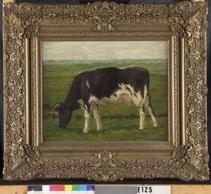 Weiland met liggende koe bij een sloot