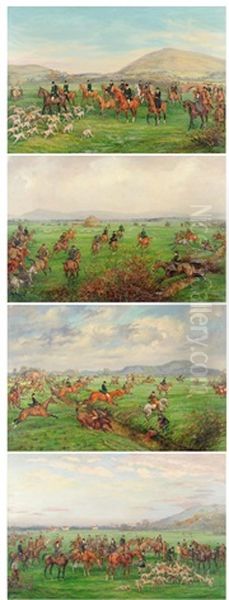 Moving Off From Loxton Bow, No.1, See-ho At The Red Brick Pound, No.2, Full Cry Over Brent Broad, No.3 And Who-oop At Webbington (4 Works)