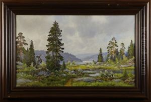 Norwegische Fjordlandschaft Oil Painting by Georg Anton Rasmussen
