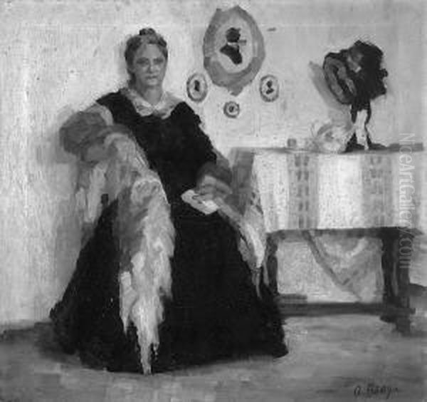 G. "dame Am Tisch". Sign. Ol Auf Lwd. Rest. 68 X 73 Cm