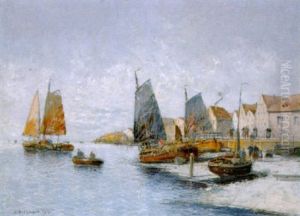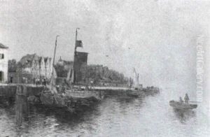 Hollandische Winterlandschaft Mit Fischern Auf Einem Kanal