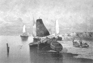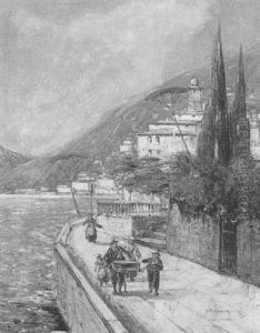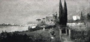 Blomstrende Sydlansk Landskab Med Udsigt Over Havet, I Forgrunden Figurer Og Aesel Ved By