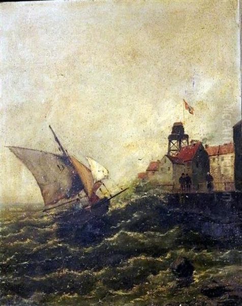 Coming In To Harbour + Wind Off The Harbour (2 Works) Oil Painting - Georg Fischhof