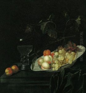 Grosses Fruchtestilleben Mit Glaspokal, Bierglas Und Zitrone