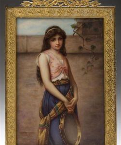 Ein Junges Stubenmadchen Lehnt Lachelnd An Einem Gemalde