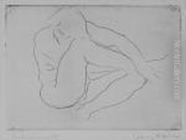 Sitzender, Von Rechts Seitwarts Gesehener Ruhender Akt, Der Geneigte Kopf Auf Den Angewinkelten Arm Gestutzt