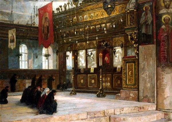 Bring the timeless beauty of Georg Macco's Eastern Orthodox Chuch Interior into your home with a handmade oil painting reproduction. Carefully recreated on canvas by skilled artists using traditional techniques, this piece captures the delicate brushwork, subtle light, and vibrant color of the original masterpiece. With museum-level quality and rich texture, it brings elegance and artistic depth to any space. Enjoy free shipping and make this masterpiece a part of your personal collection.
