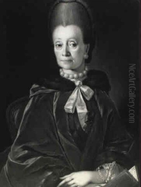 Portraet Af Dame Med Rodt Slag Og Pelskrave Samt Collier Med Store Perler