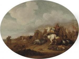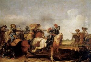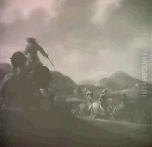 A Cavalry Skirmish Oil Painting by Georg Philipp Rugendas I