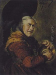 Brustbild Eines Langstiel- Eiferauchenden Tiroler Bauern Mit Grunem Federgeschmuckten Filzhut Blauer Jacke U Roter..