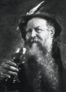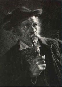 Brustbild Eines Langstielpfeife Rauchenden Tiroler Bauern Mit Grunem Federgeschmuckten Filzhut