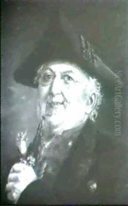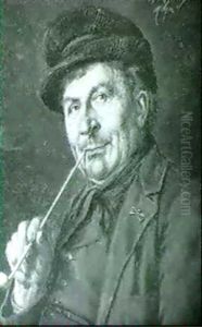 Brustbild Eines Tiroler Bauern Mit Langstielpfeife, Blauer Jacke Und Roter Weste