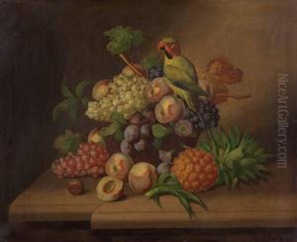 Fruchtestillleben Mit Papagei