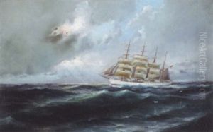 Geestemunder Fischdampfer Und Bark Auf Der Nordsee