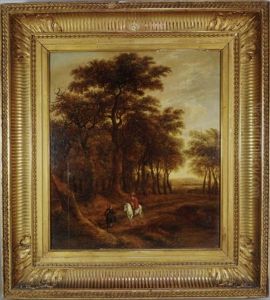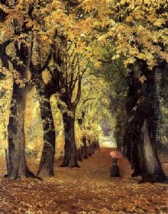 Figures Resting On A Tree-lined Path